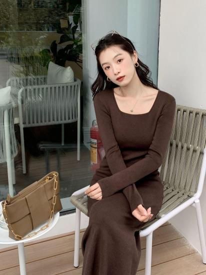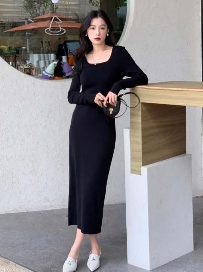 秋冬に人気 シンプルロング丈カジュアルワンピース 4色 XS〜XL 大きいサイズ