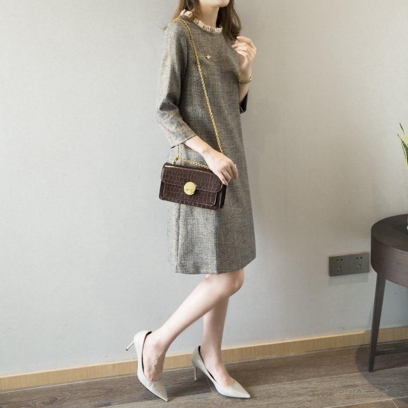 フリルがキュート 清楚かわいい膝丈七分袖ワンピース オケージョン フォーマル